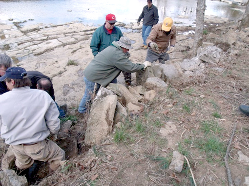 | Wall doctoring The Civil War Trust’s annual Park Day saw plenty of activity at Kentucky battlefields and sites. This Park Day crew at Perryville restored a stone wall at Doctor’s Creek Kurt Holman |