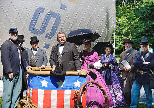 | Ready to ride LEFT: Re-enactors gather prior to a balloon ride featuring the “Union Air Force.” See story |