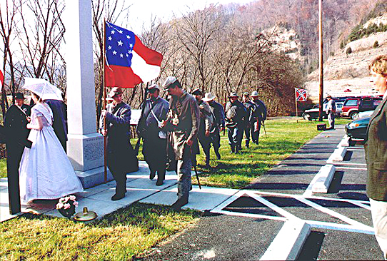 | Ivy colors Pvt. Jordan Stransky and the Confederate guards present Confederate colors during the Ivy Mountain Monument Dedication in Floyd County in 2001. See story |
