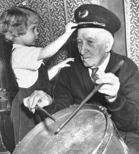 | Still a drummer A youngster is more fascinated by Albert Woolson's Grand Army of the Republic hat than he is with the Union veteran’s drumming ability. Woolson died in 1956 at age 109 as the oldest surviving Civil War veteran. See story |
