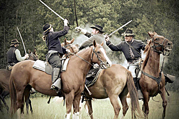 Although one horse seems to be disinterested in the proceedings, re-enactments at Cynthiana can be cut-up events, especially when cavalry troopers get involved. Cynthiana’s next re-enactment weekend is June 15-17, it’s 150th anniversary. |