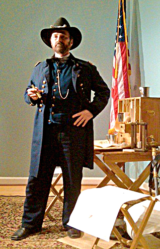 | Grant style Curt Fields’ portrayal of Gen. U.S. Grant reflects the mannerisms and speaking style of the Federal commander. As a long-time educator and Civil War buff, Fields believes living historypresentations are the best formats for teaching accurate history lessons. See story |