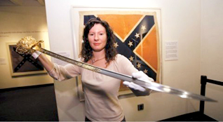 | Lee’s cutting edge Cathy Wright, Museum of the Confederacy curator, holds the newly restored sword carried by Gen. Robert E. Lee during the surrender at Appomattox. The sword is now on display at the new Museum of the Confederacy-Appomattox Museum. See story |